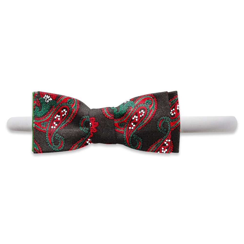 Looking for a black tie that's not just black? Here it is! This black-as-deep-space silk has red, green and white paisley and floral icons woven throughout. Beyond handsome.