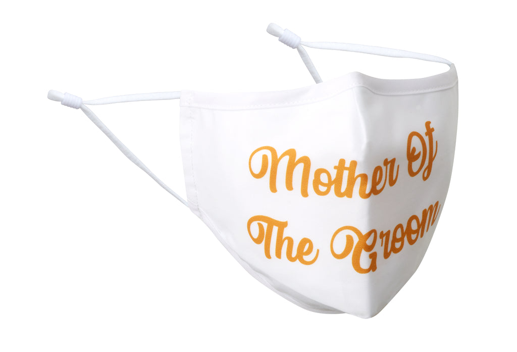 Now you'll know exactly who is who in the wedding party, even if everyone is appropriately covered up! This lovely white mask with gold lettering is for the Mother of the Groom.