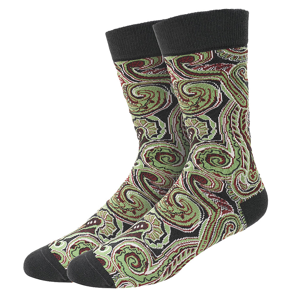 Featuring a refreshing take on a paisley design, these dark green socks with whirls and swirls of grass-green, brown and white will add some pizzazz to your sock drawer.