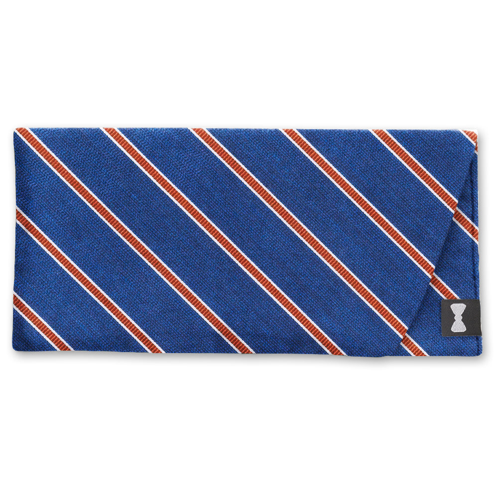Lake blue woven silk and copper-colored ribbons with white edges combine to create a singularly appealing all-seasons stripe.