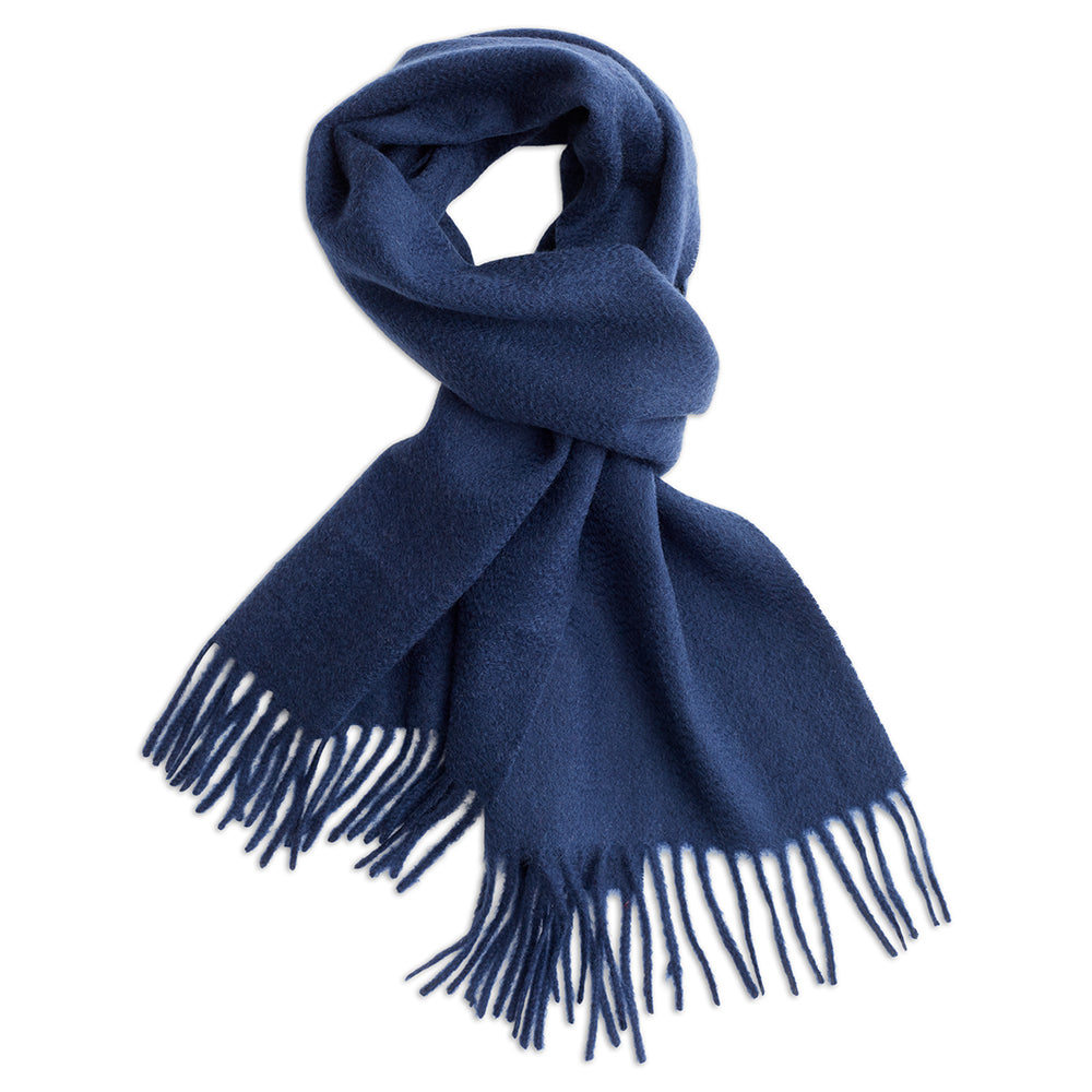 Treat yourself to this 100% cashmere scarf in a classic shade of navy blue. Wear it with your coat to keep warm or add it to an outfit for some extra style. Regardless of your sartorial choice, this 12" x 65" fringed scarf will be a welcome addition to your winter wardrobe.