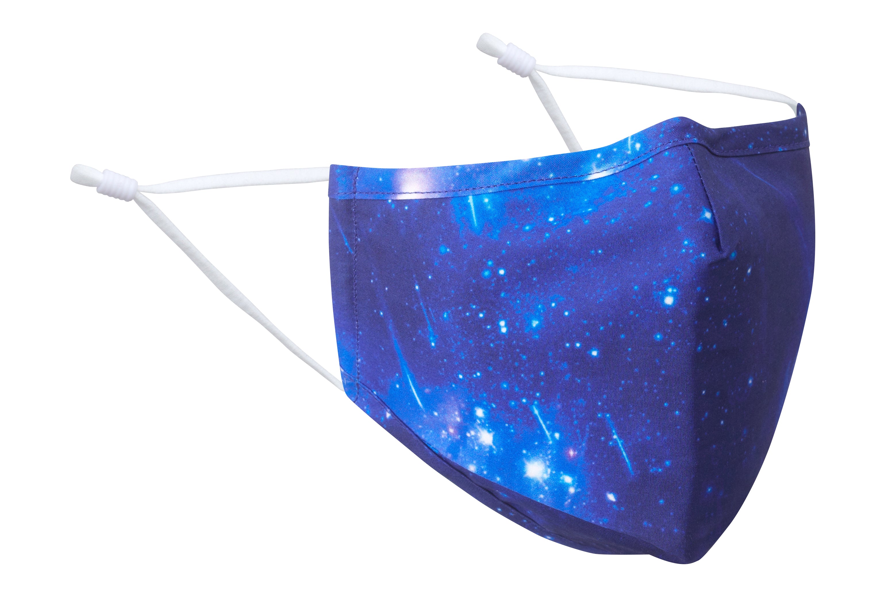 Navy blue cotton hosts the lights of outer space on this very cool face mask.