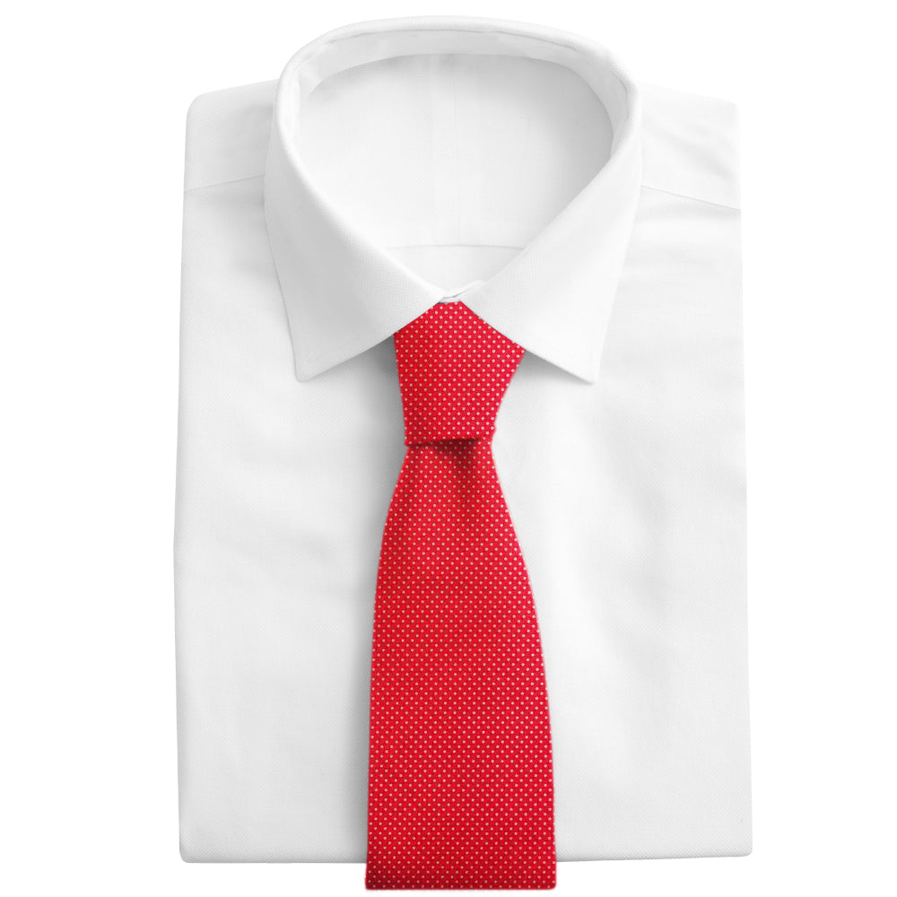 The silver polka dots woven in this practically perfect shade of red silk have taken a classic tie pattern to whole new heights of style.