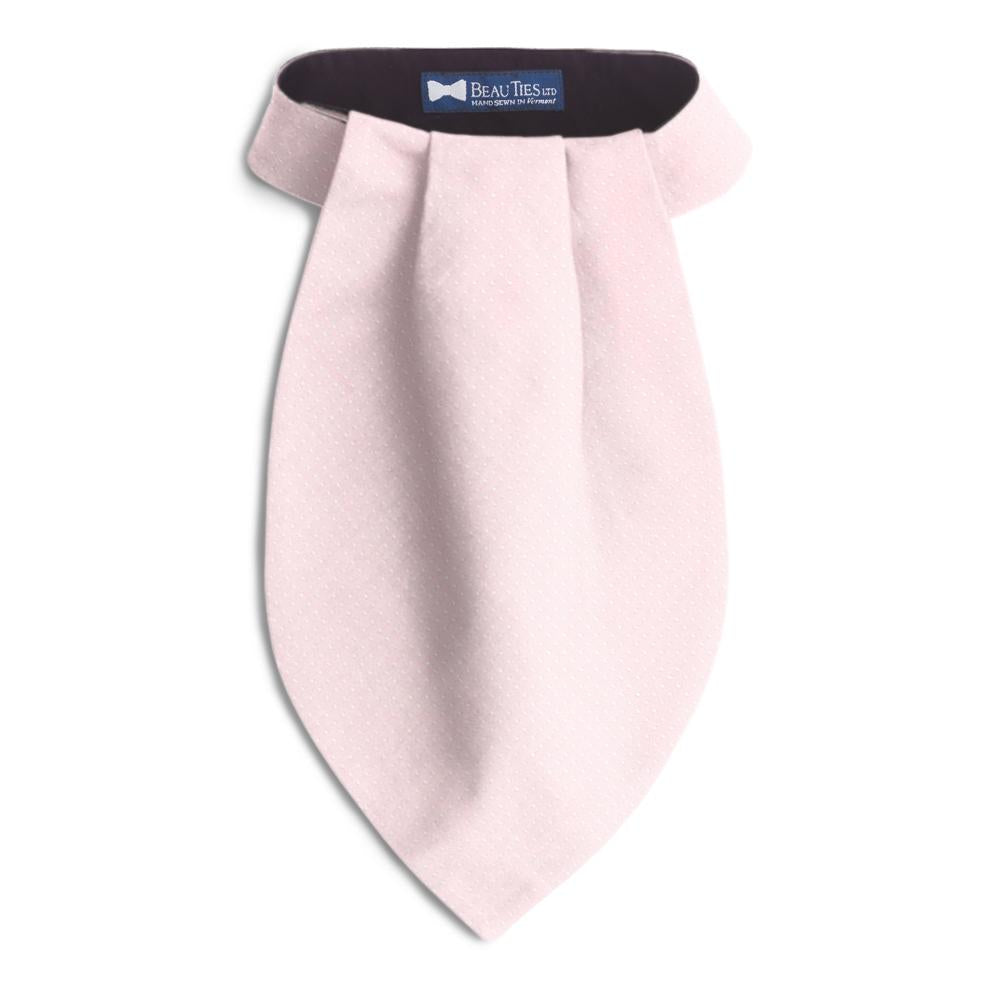 Woven silk in a shade of pink so soft that its almost not there, small white polka dots add interest and texture to this beautiful formal option.