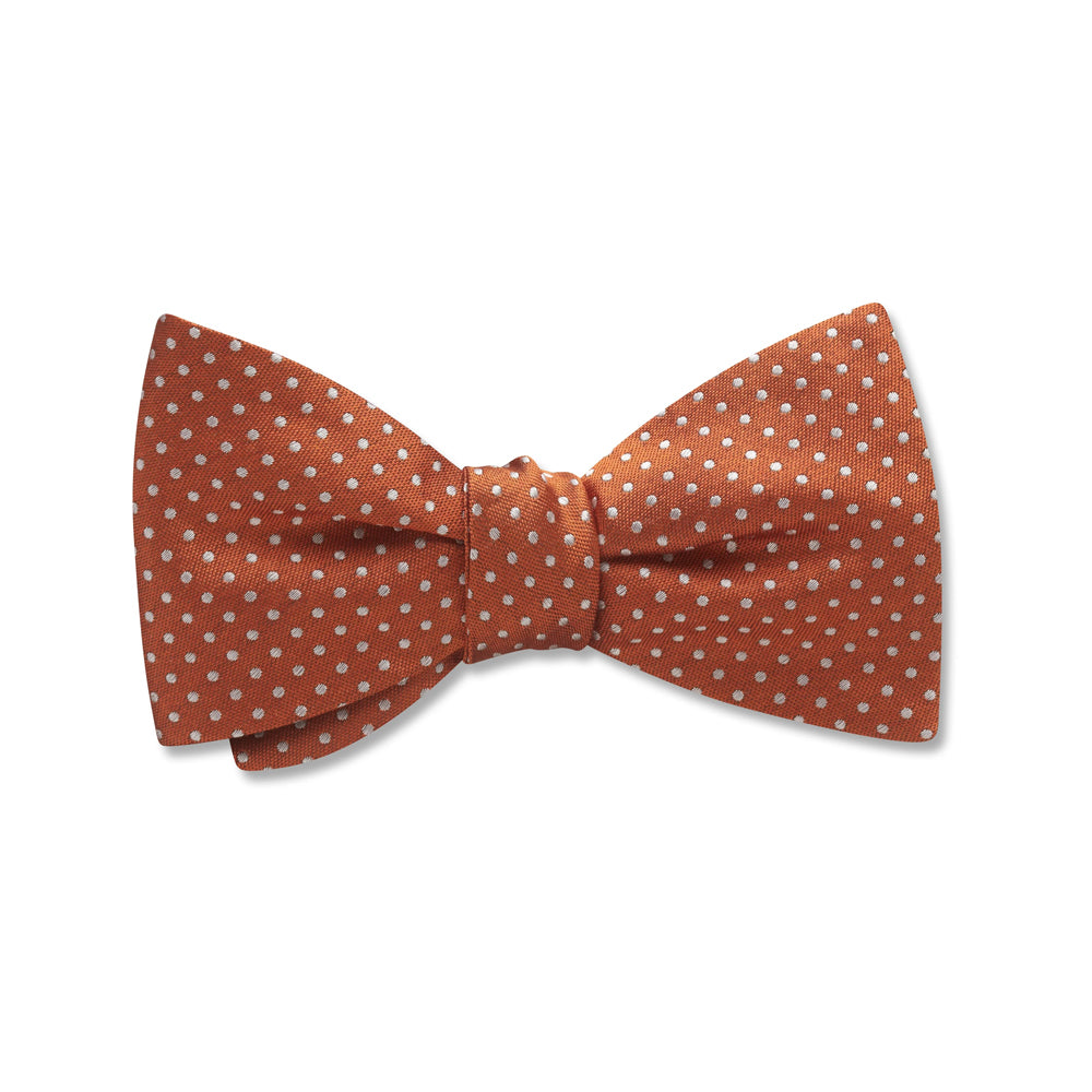 Small silver polka dots take this lovely shade of autumn orange woven silk to an entirely new level. Great for both formal and informal occasions, and never out of style.