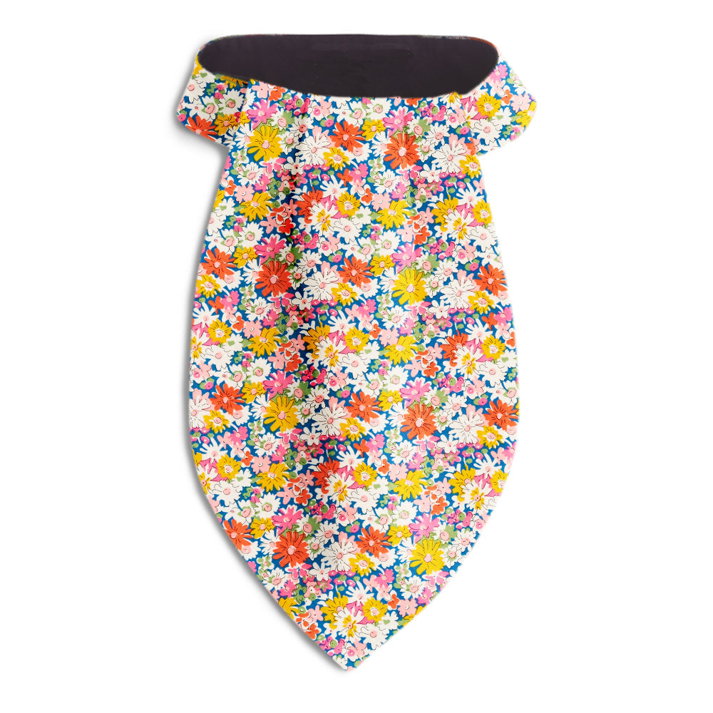 If you're a fan of Liberty of London designs, you'll want to add this lovely option, with its colorful cottage garden of yellow, white, pink and orange flowers on dusky blue cotton, to your wardrobe.