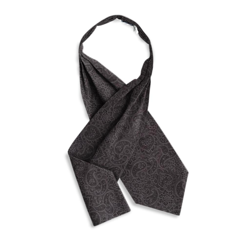 The Pembroke Black patterned free-fold cravat features three stitched center pleats that allow luxurious drape in front without fabric bulk at the nape of your neck. It is completely reversible and sized for a perfect fit. May require a stick-pin.