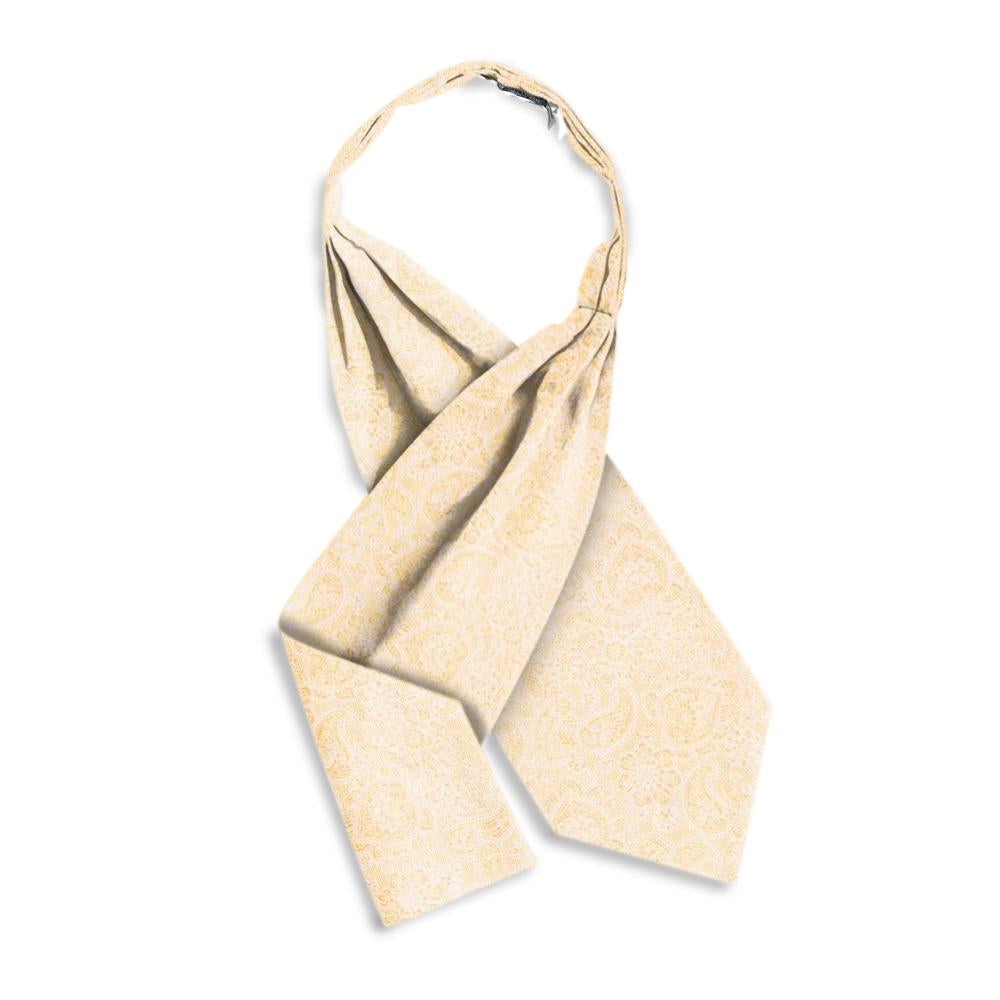 The Pembroke Ivory patterned free-fold cravat features three stitched center pleats that allow luxurious drape in front without fabric bulk at the nape of your neck. It is completely reversible and sized for a perfect fit. May require a stick-pin.