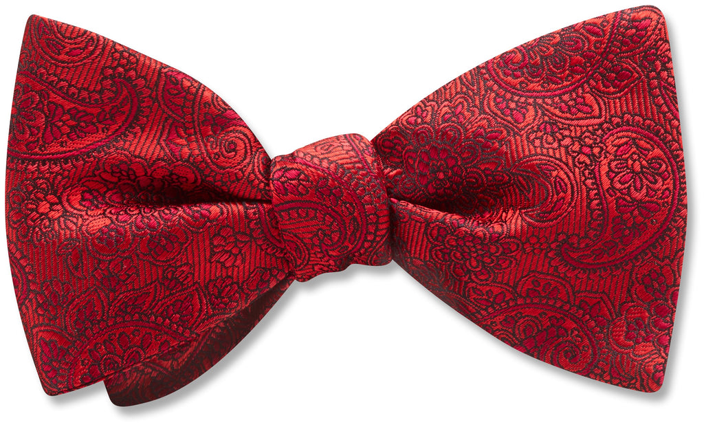 Consider the just-barely-there patterns in paisley and flower shapes woven into this handsome shade of red silk for the next event when you need to make a statement.