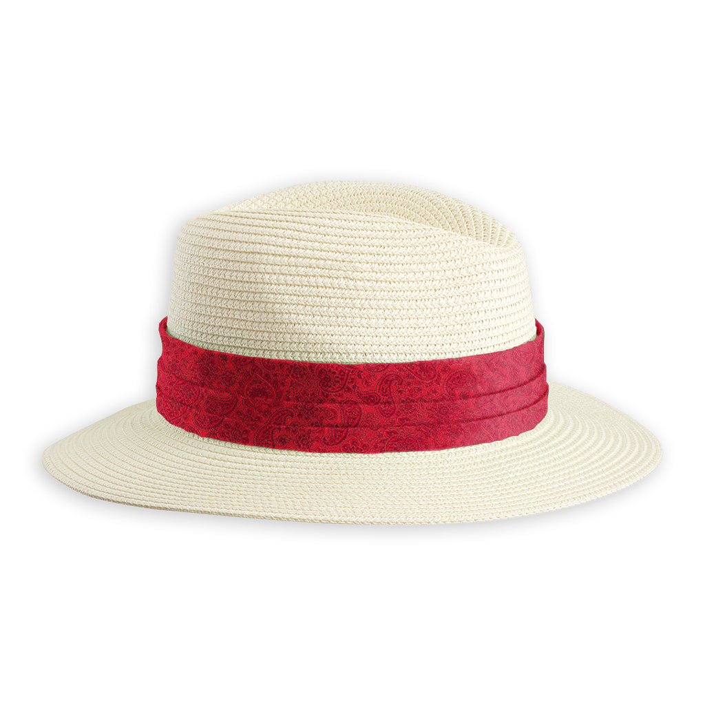 Our handmade hat bands are 29 inches long, 1.75 inches wide, feature stylish pleats, and are finished with small fabric picks, so they're adjustable in size and easy to move from one hat to another. A snazzy addition to your head gear.