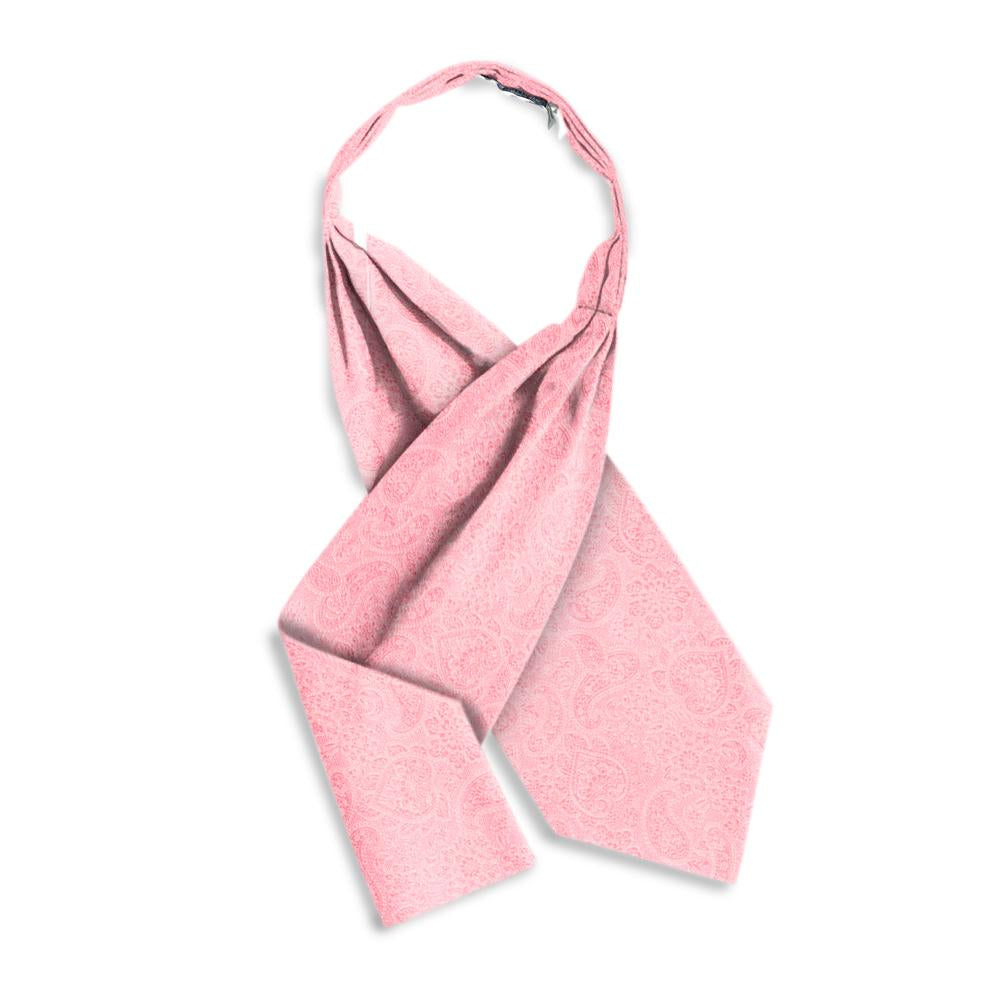 The Pembroke Pink patterned free-fold cravat features three stitched center pleats that allow luxurious drape in front without fabric bulk at the nape of your neck. It is completely reversible and sized for a perfect fit. May require a stick-pin.