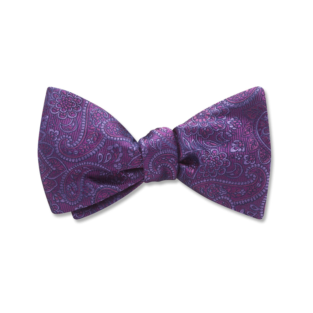 Swirling paislys intermingled with flowing floral icons are woven in a delicious shade of purple silk.A great option for taking your black tie wardrobe to another level.