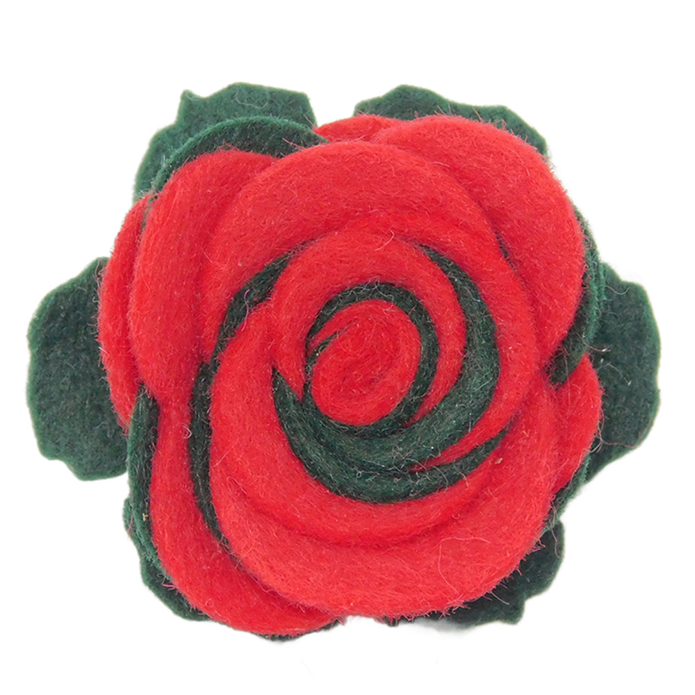 This cheerful boutonniere will not wilt or fade after you've tucked it into your lapel. Featuring dark green and bright red hand cut wool felt twisted into a cheerful flower, it's finished with a pin to anchor it to your jacket.