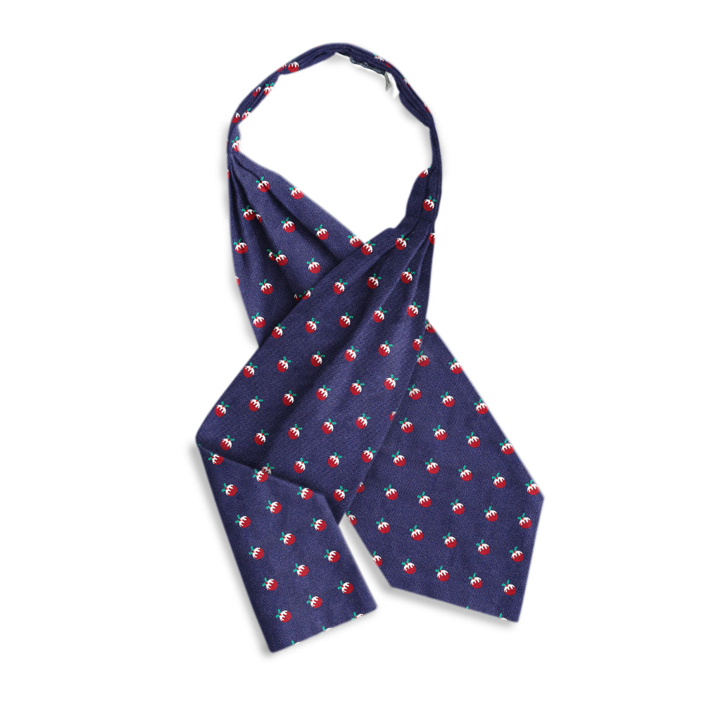 The Plum Pudding patterned free-fold cravat features three stitched center pleats that allow luxurious drape in front without fabric bulk at the nape of your neck. It is completely reversible and sized for a perfect fit. May require a stick-pin.