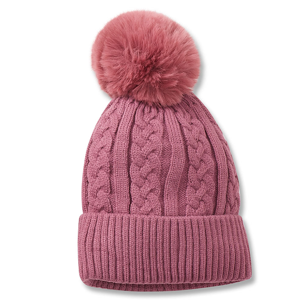 Never out of style, this cable-knit pattern purple beanie is fully lined with with fuzzy soft faux fur - and topped with a matching pom-pom. A totally fun addition to your fall and winter wardrobes!