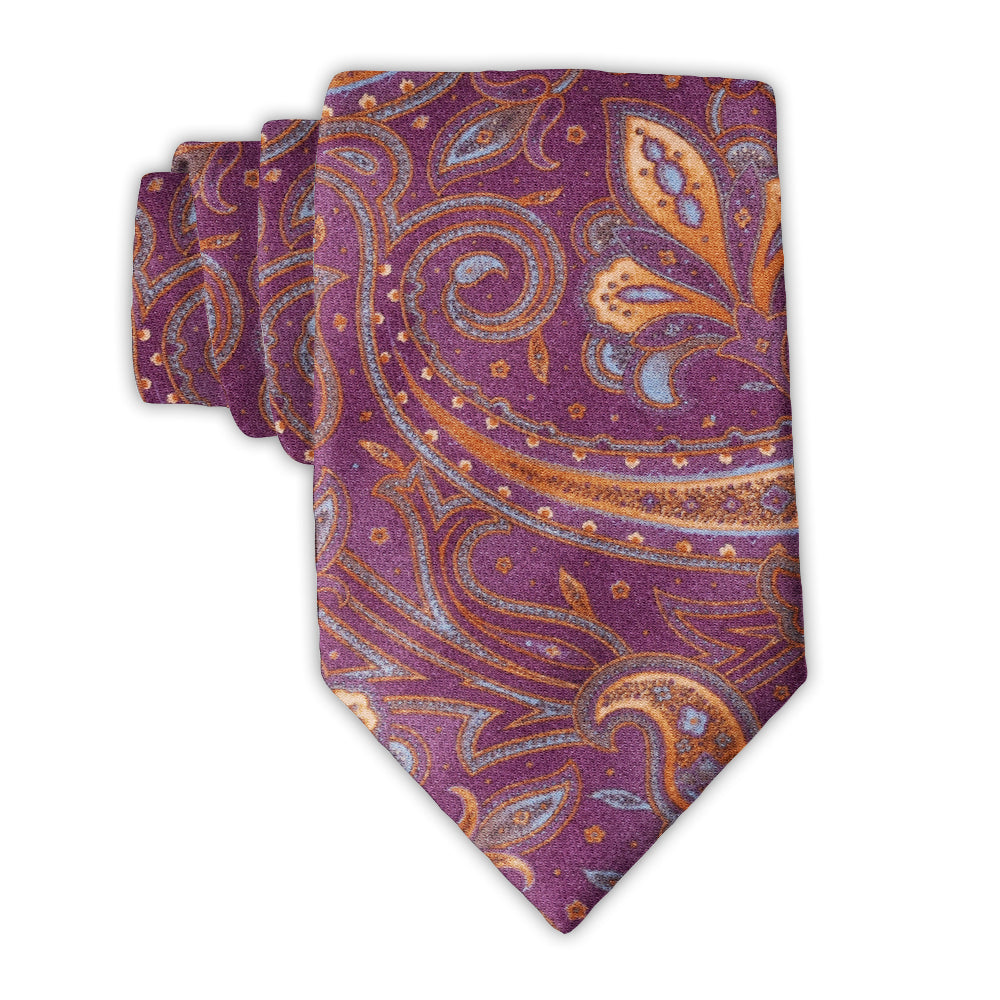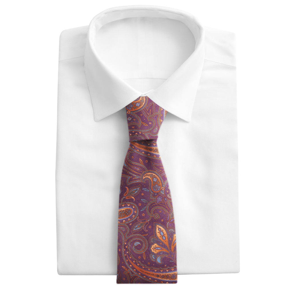 Flaunt your sartorial know-how wearing this stunning purple Italian wool dancing with paisley and floral icons in shades of copper and blue.