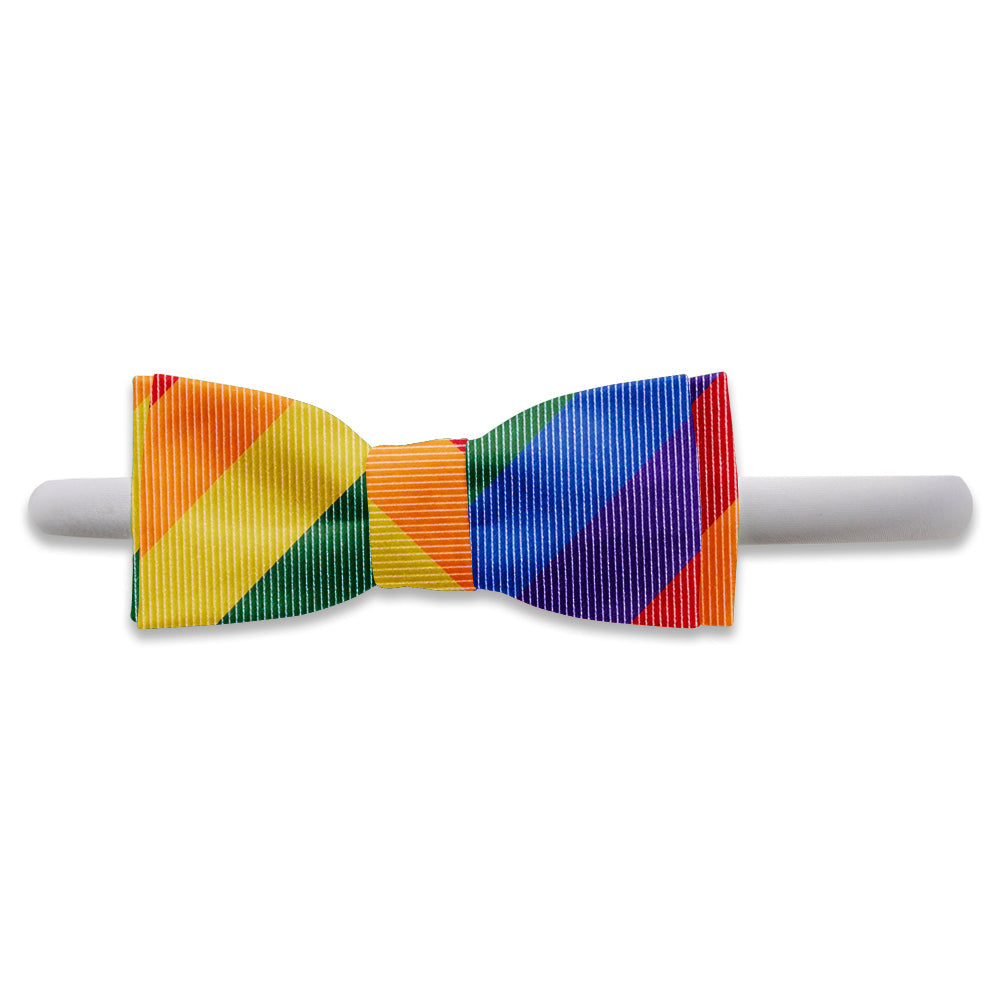 Add a beautiful option to your wardrobe with this pattern of repeating bands of woven silk in rainbow hues.