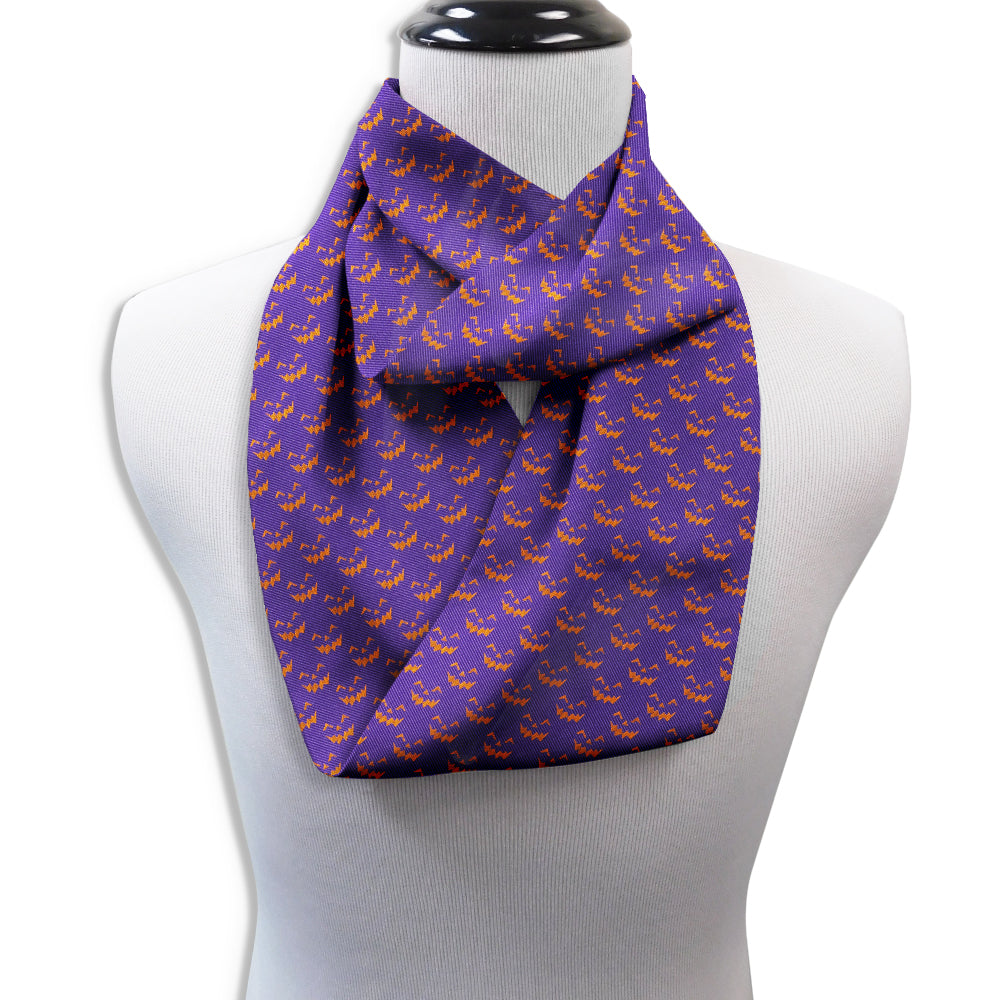Each scarf is double-sided with a 58 inch circumference and is 6 inches wide. If you've always wanted a silk scarf, the Pumpkinhead is a great choice!
