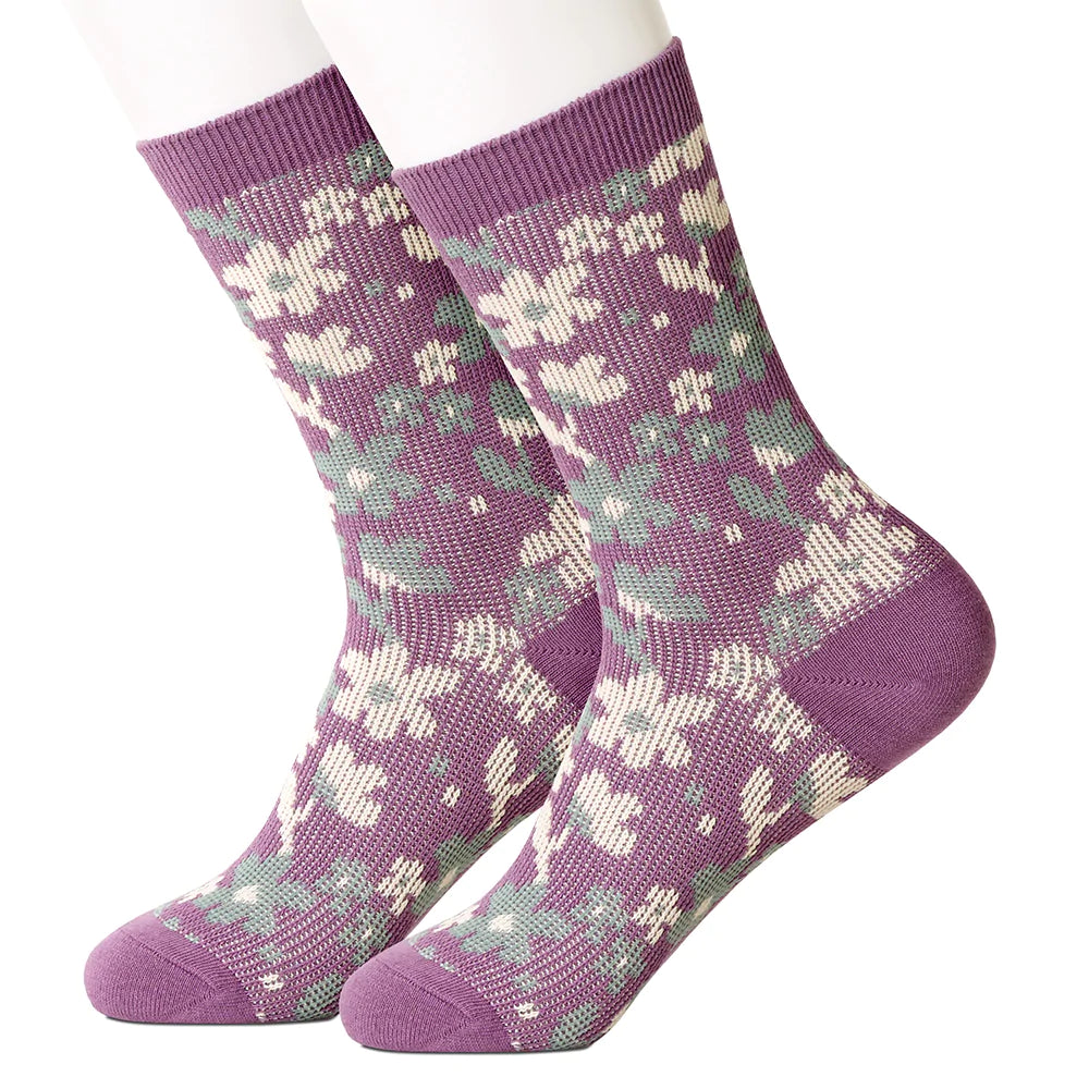 A plethora of white and light blue blossoms adorn these perfectly purple socks. You know you need them!