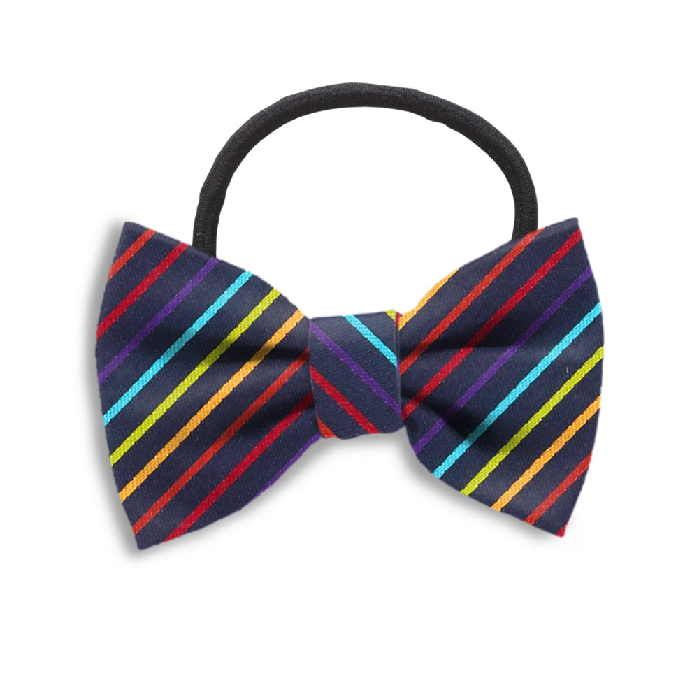 No need to leave women out of your Beau Tie family. Our hair bows are beautiful and practical - with the Rainbow River bow measuring about 3 inches wide and attached to pony tail holder with a circumference of 4-3/4 inches.