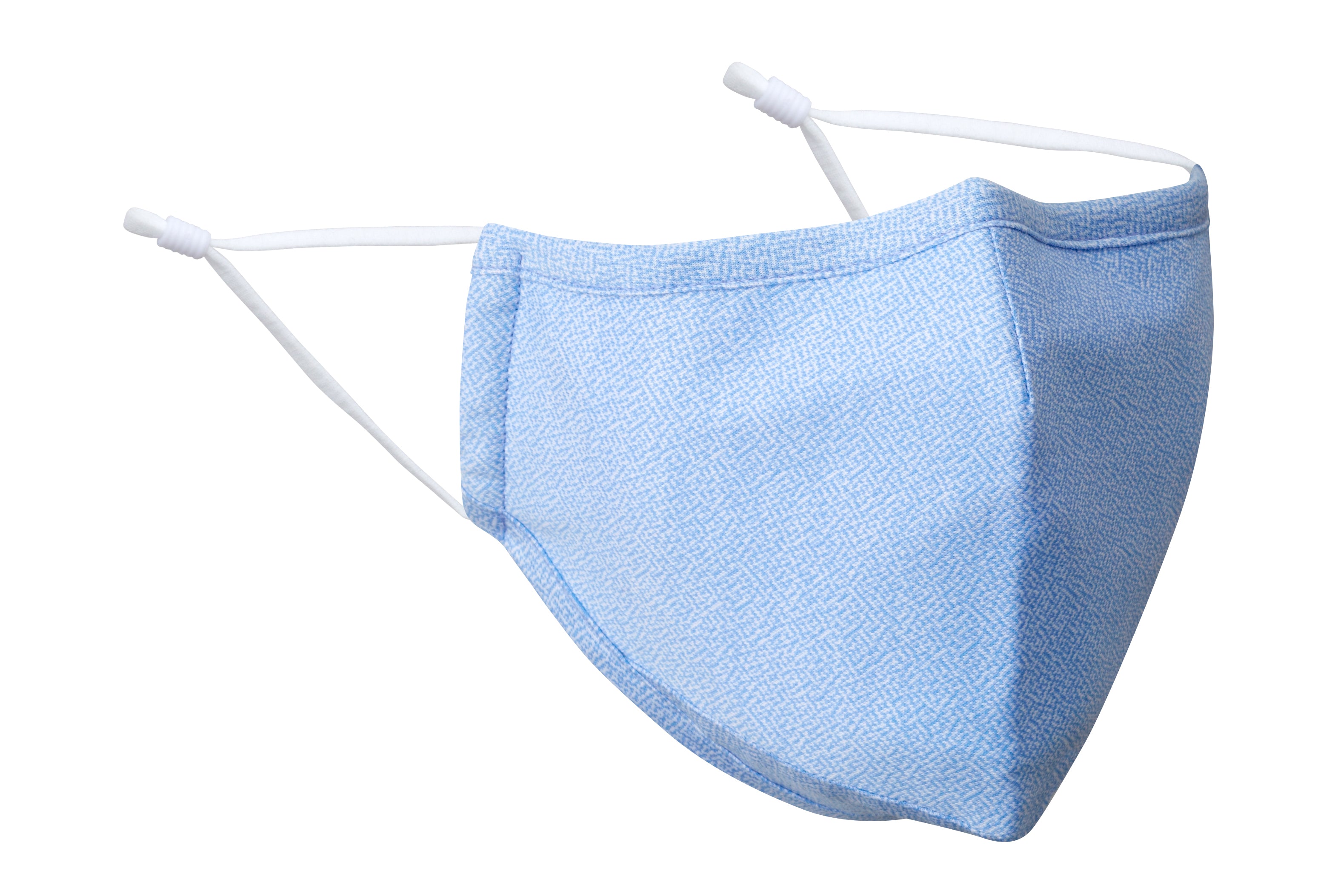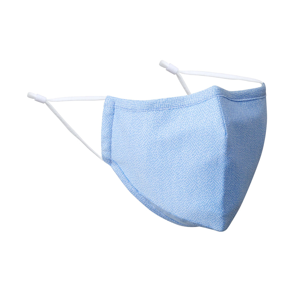 Almost a solid, but not quite, this light blue cotton face mask with its textured pattern will go well with almost any outfit.