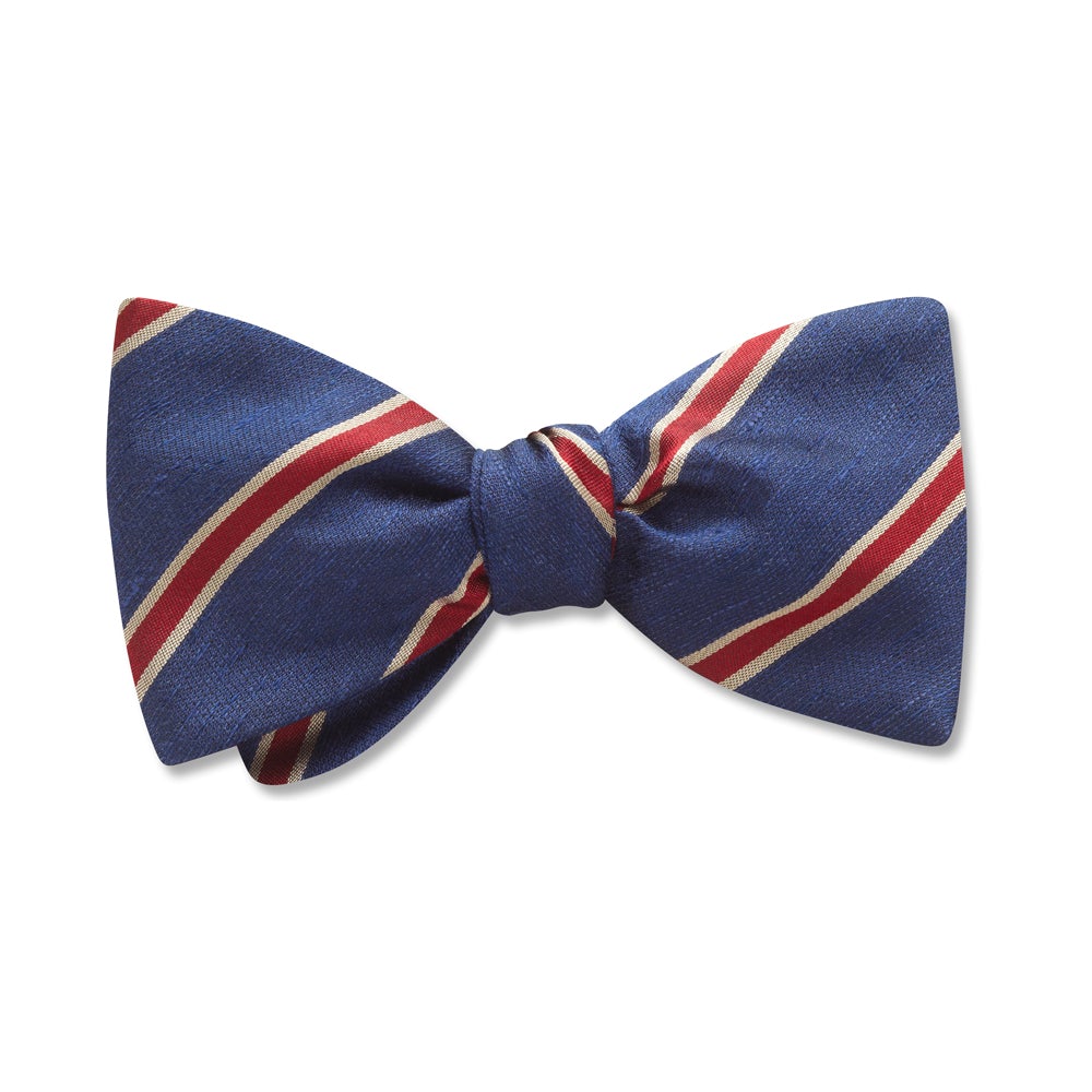 When you need exactly the right stripe, this slightly nubbly woven silk, with trios of red and silver between broad bands of navy blue, will surely fit the bill.