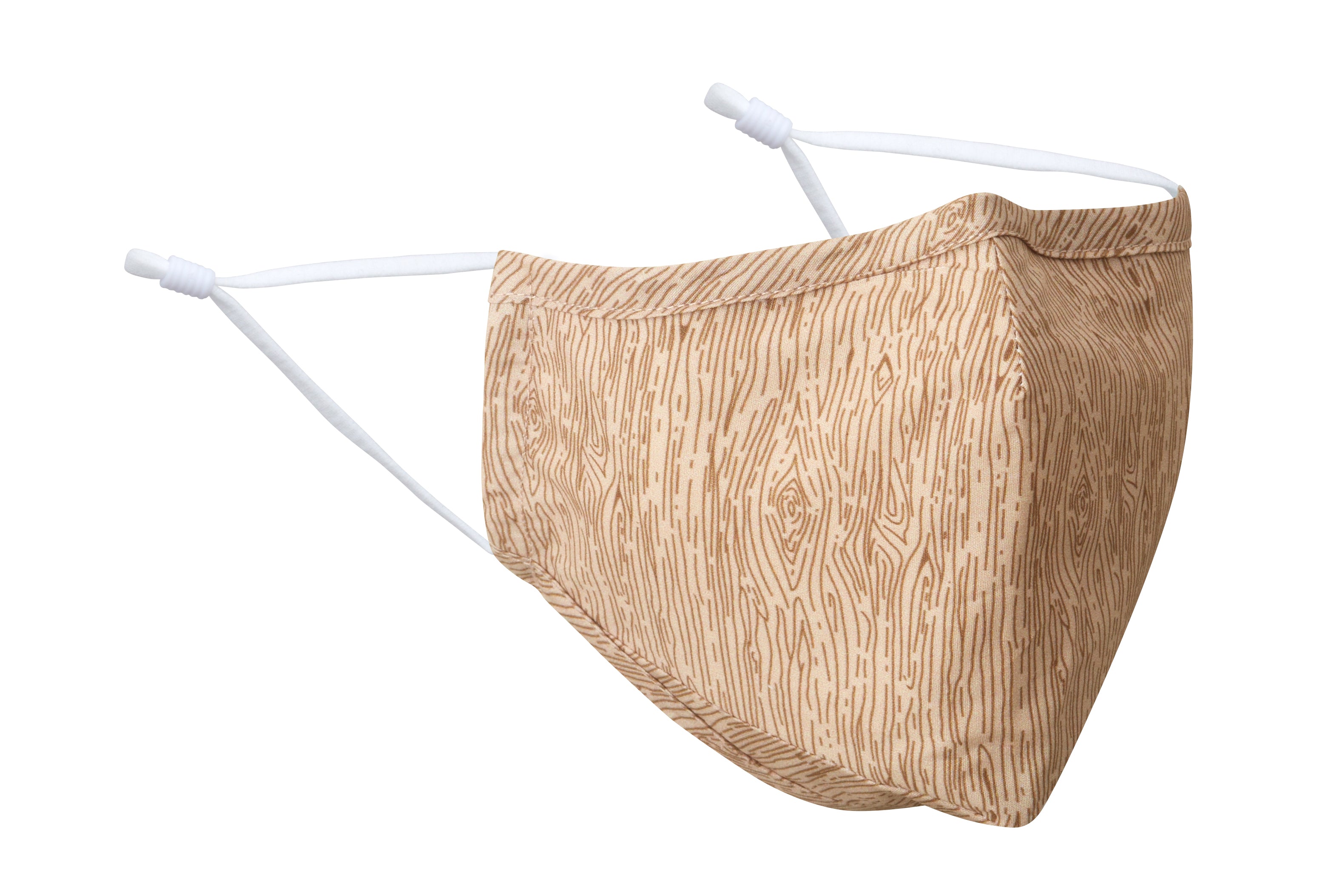 Nope. It's not a wooden face mask, but this light brown cotton with a brown wood-grain pattern may fool a few folks!