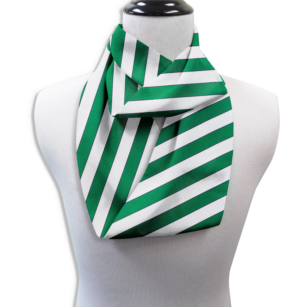 Each scarf is double-sided with a 58 inch circumference and is 6 inches wide. If you've always wanted a silk scarf, the Scholastic Green/White is a great choice!