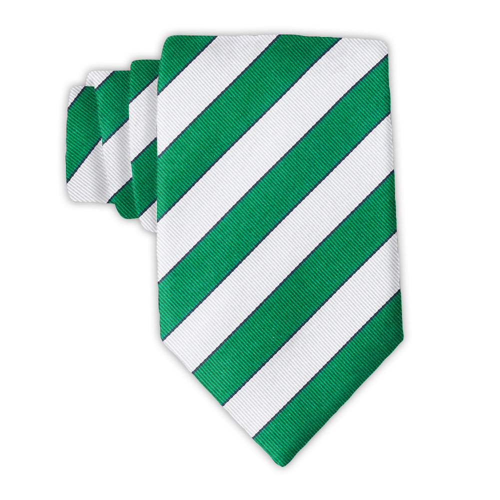 Wonderful white and green stripes with slim borders of navy blue in woven silk will bring a lovely dash of color to any outfit. And if you happen to be an alum of a school that sports this combination, you can wear them quite proudly.