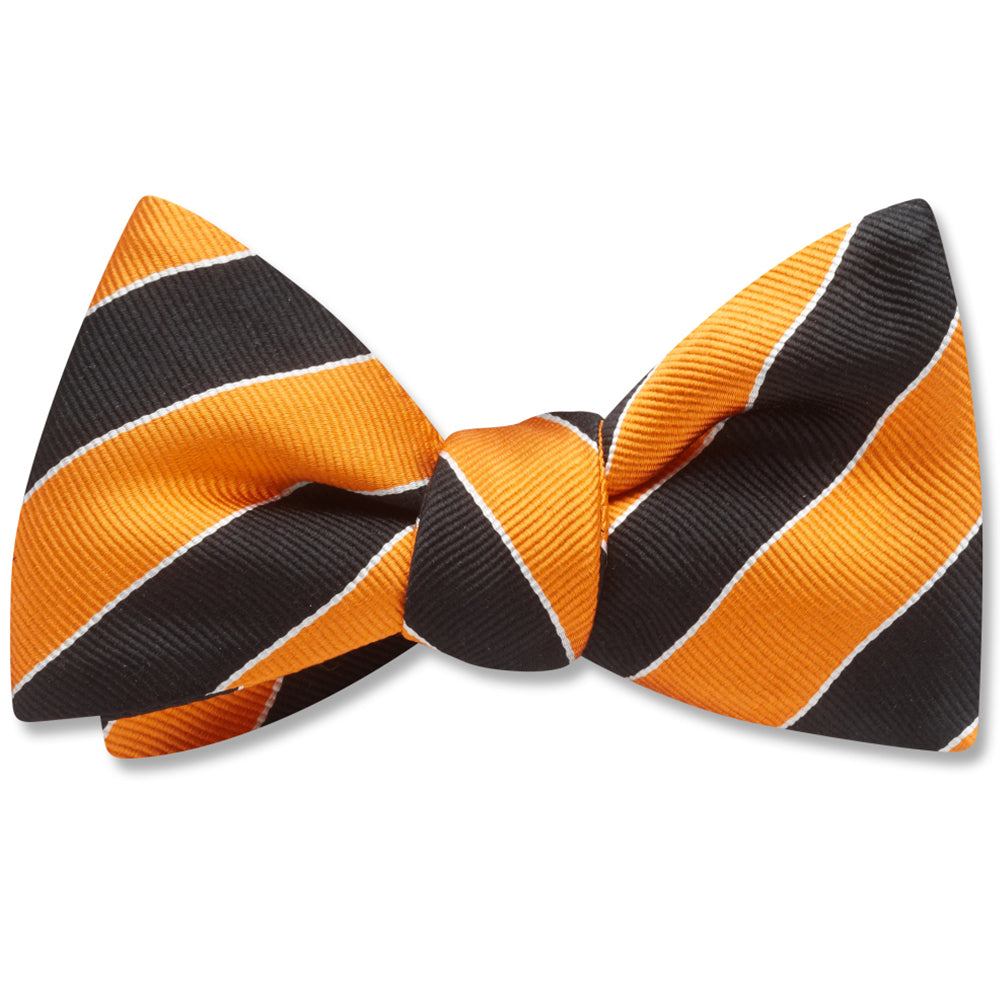 For Tigers fans everywhere, whether high school, prep school, college or university, here's the perfect choice - woven in beautifully textured silk - of orange and black stripes separated by slim bands of white. (Of course, being a Tigers' fan is not a prerequisite for wearing this classic tie!)