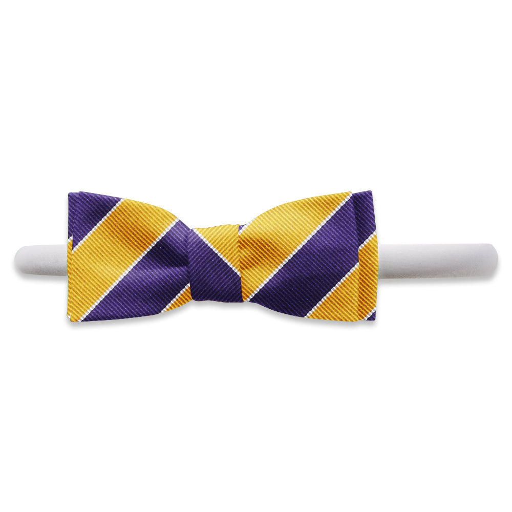 Stripes in classic shades of purple and gold woven silk with slim bands of white in between are the chosen colors for lots of schools, but you don't need to be an alum to wear them!