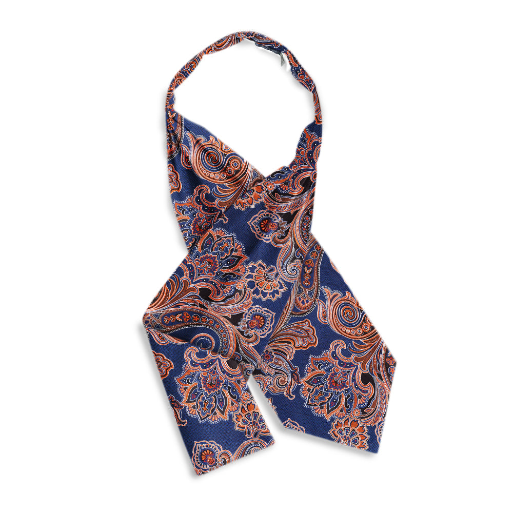 The Sebring patterned free-fold cravat features three stiched center pleats that allow luxurious drape in front without fabric bulk at the nape of your neck. It is completely reversible and sized for a perfect fit. May require a stick-pin.