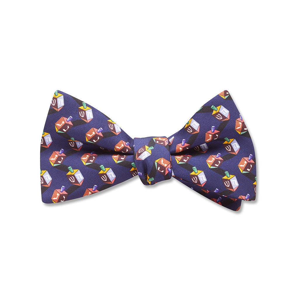 Lots and lots of dreidels spin with abandon on black silk twill in this cheerful holiday design. Wear it for luck when you play.
