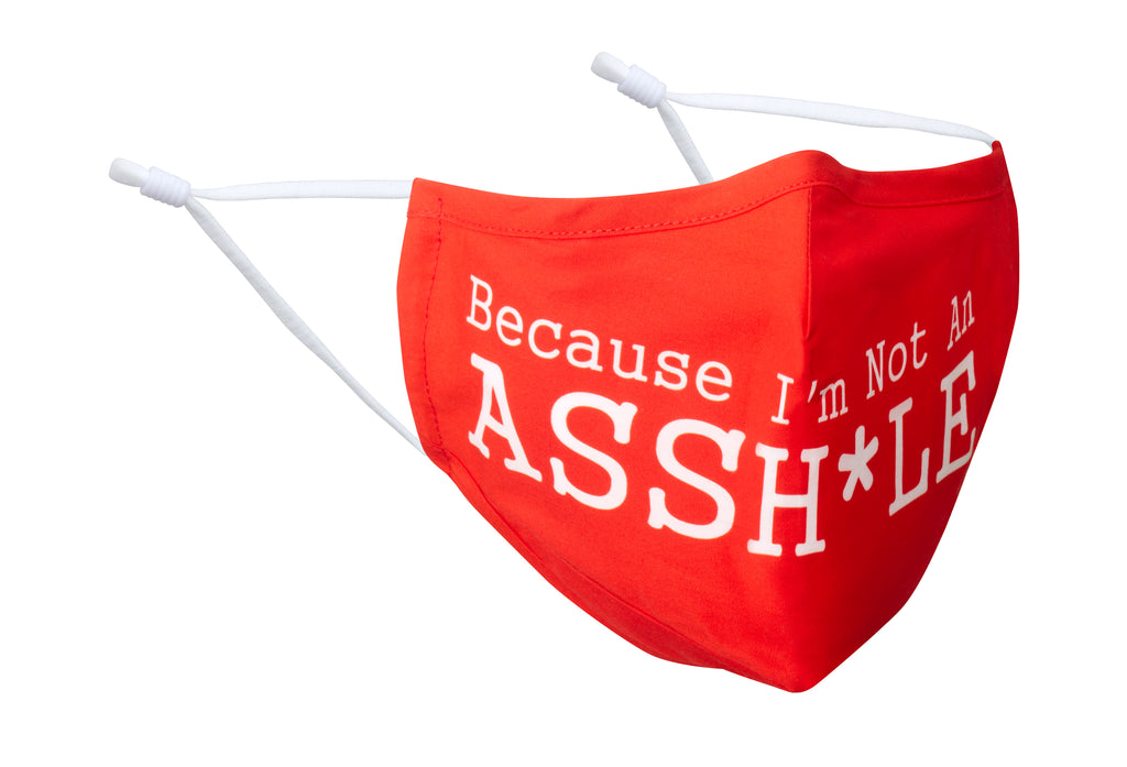 You may have been thinking it. Now, if you dare, you can put it out there on this bright red cotton mask.