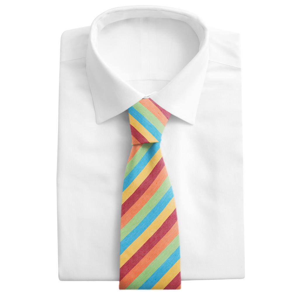 We're betting that once you've tied on this oh-so-appealing stripe featuring bands of mint green, orange, red, yellow and light blue, you'll want to wear it every day! Silk/linen blend.