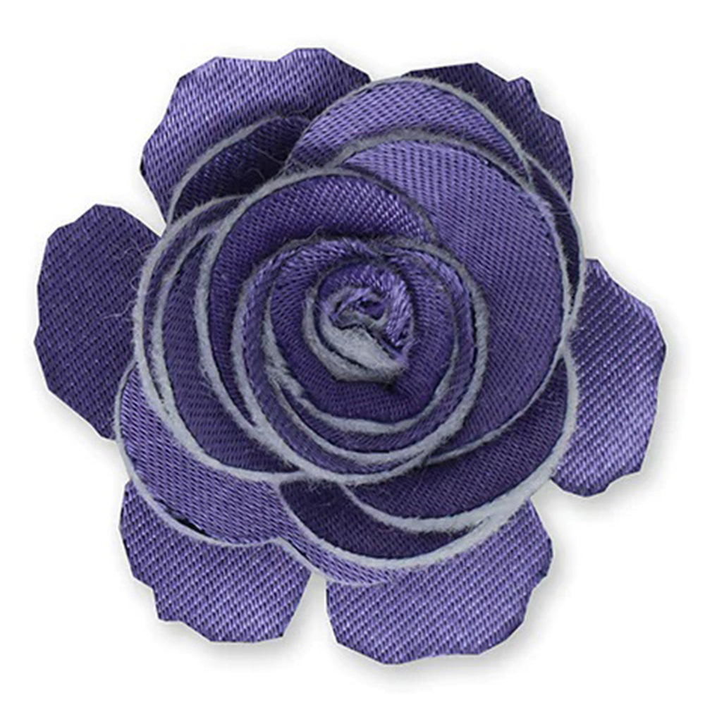 This is a medium purple rose made of silk and felt. It's very carefully crafted and it shines. It comes with a clasp that closes the pin securely. It could be worn on a lapel or a lanyard or whatever?