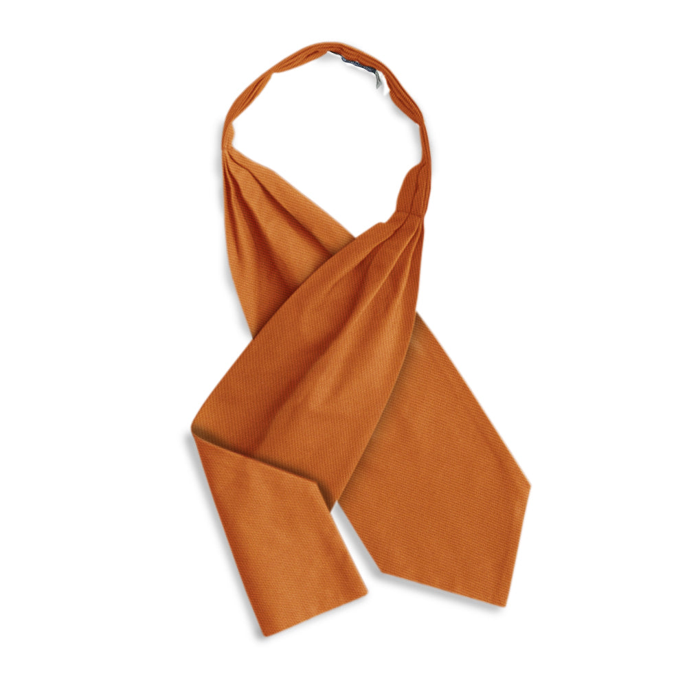 The Somerville Russet patterned free-fold cravat features three stitched center pleats that allow luxurious drape in front without fabric bulk at the nape of your neck. It is completely reversible and sized for a perfect fit. May require a stick-pin.