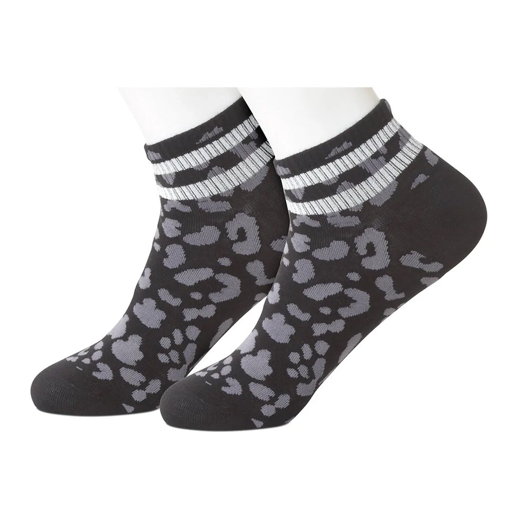 Catch a few eyes with these deep black ankle socks with artful grey splatters - finished with a pair of silvery stripes in the ribbed top.