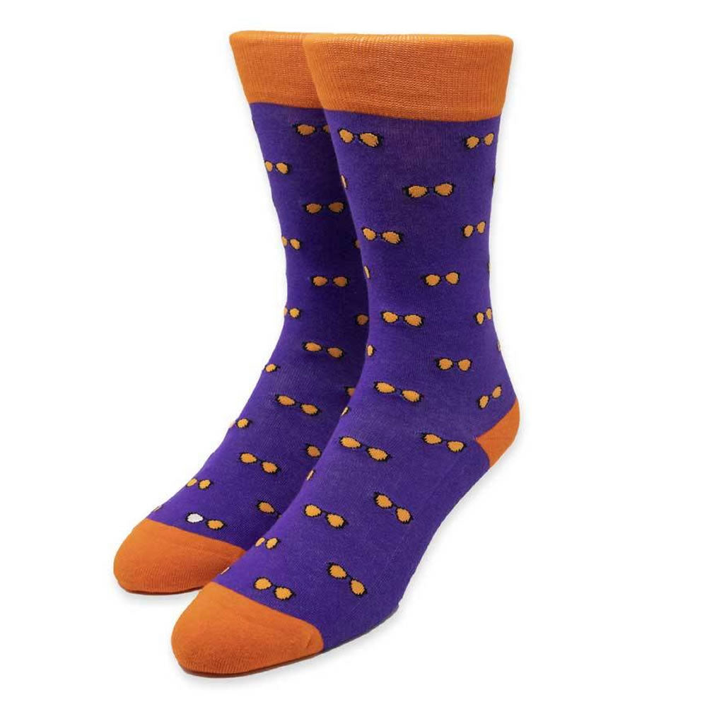 I rated the socks 3 stars because they were somewhat different than I expected. Like food in a restaurant, you have a mental taste or look the food you order will be and if it looks or tastes different you are less happy with your choice. I would have liked the spectcles to be better defined or detailed. The purple color of the sock raised the question of whether or not the personality of the recipient would allow himself to wear them - perhaps at a party - let your hair down atmosphere get together. Contrast this with the spectacle tie I purchased for the same person - he loves it and wears it at work.You didn't ask about the black socks with gray octagons - exactly what I expected and very pleased and already know the occasion I wll wear them.