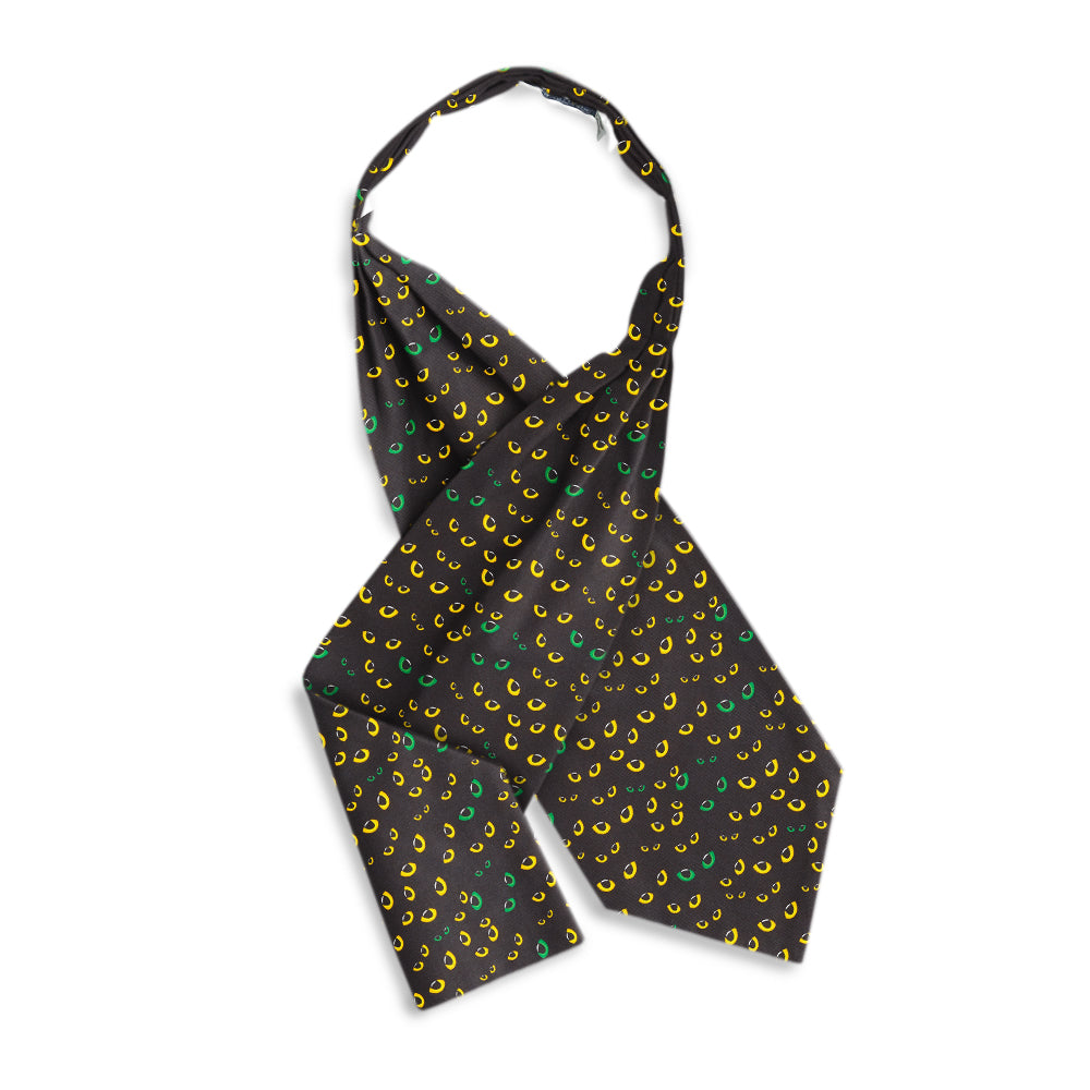 The Spookeye patterned free-fold cravat features three stitched center pleats that allow luxurious drape in front without fabric bulk at the nape of your neck. It is completely reversible and sized for a perfect fit. May require a stick-pin.