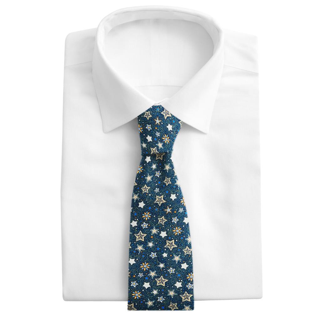 Joyful golden stars in a variety of shapes and sizes are bursting with energy in a sky of midnight blue silk.