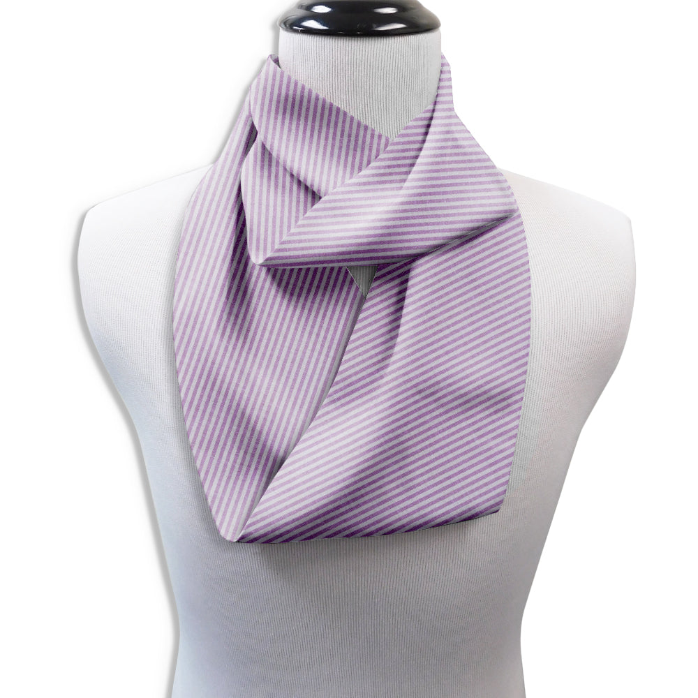 Add a cheerful note to your summer wardrobe with this light purple and white striped cotton seersucker. It's a classic.