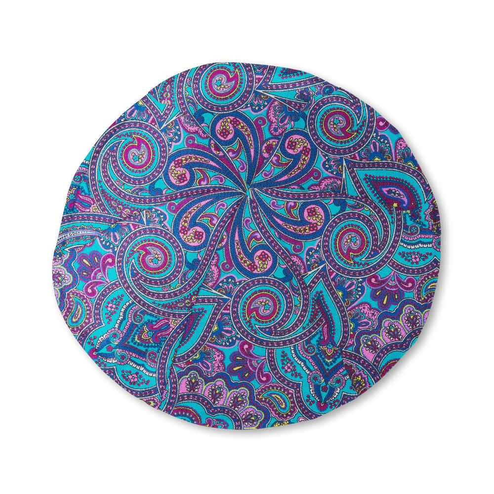 An outstanding Italian silk paisley design in a splendid combination of turquoise, pink, gold, red and blue. Prepare to be noticed!