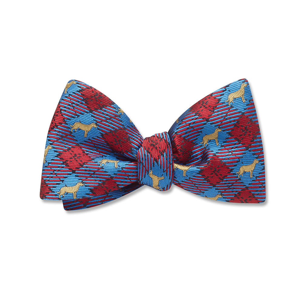 In a nod to the land of their origin, these golden retrievers are woven into a red and blue plaid, and appear to be ready and able to get to work or have some fun - whichever you prefer.