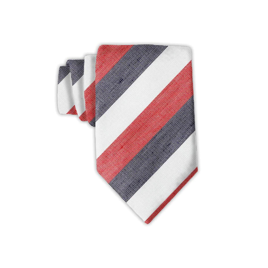 Just when you though there could not be another great red, white and blue stripealong comes this awesome blend of woven silk and linen featuring handsome bands of - you guessed it - red, white and blue.Hurray!