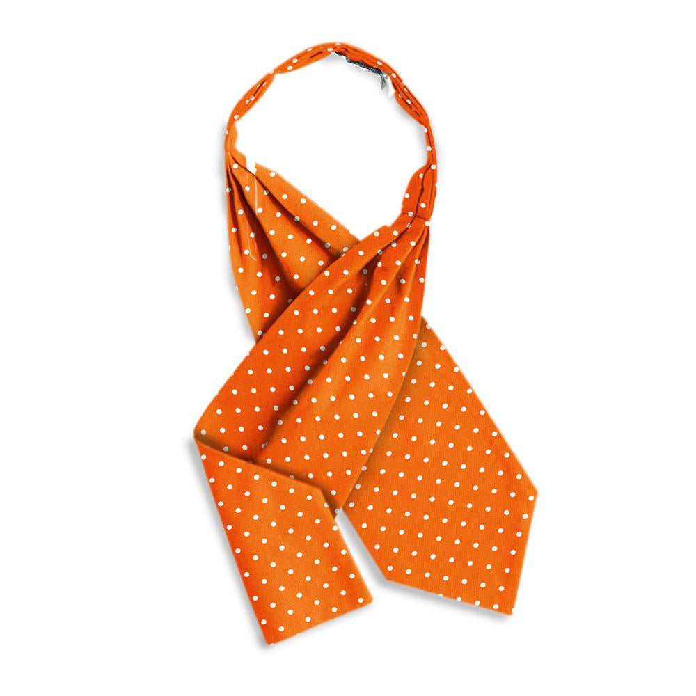 Make it a cheerful day from start to finish when you tie on this bright orange silk twill dancing with white polka dots.