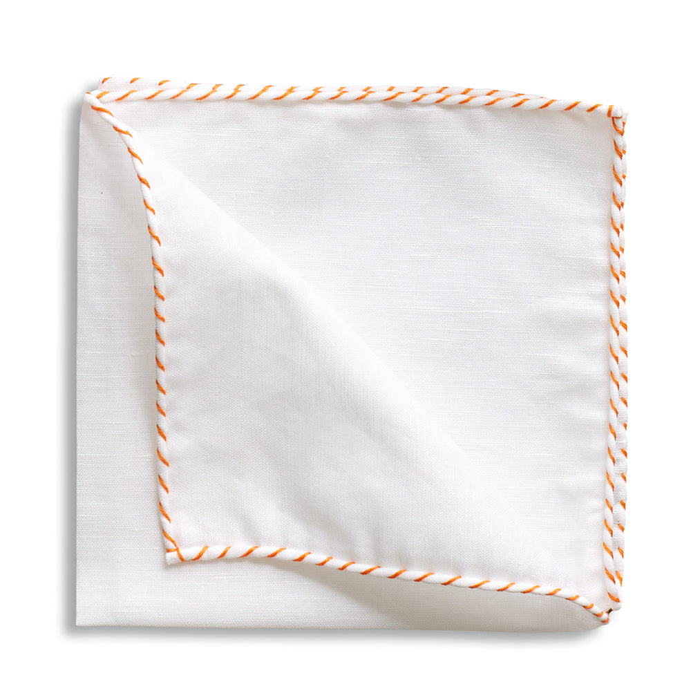 White Linen Orange Whipstitch Pocket Square