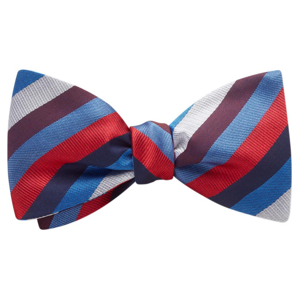 Beautifully woven in grey, silver, black, blue, red and burgundy silk, this stripe with its varying colors and textures is a show-stopper.