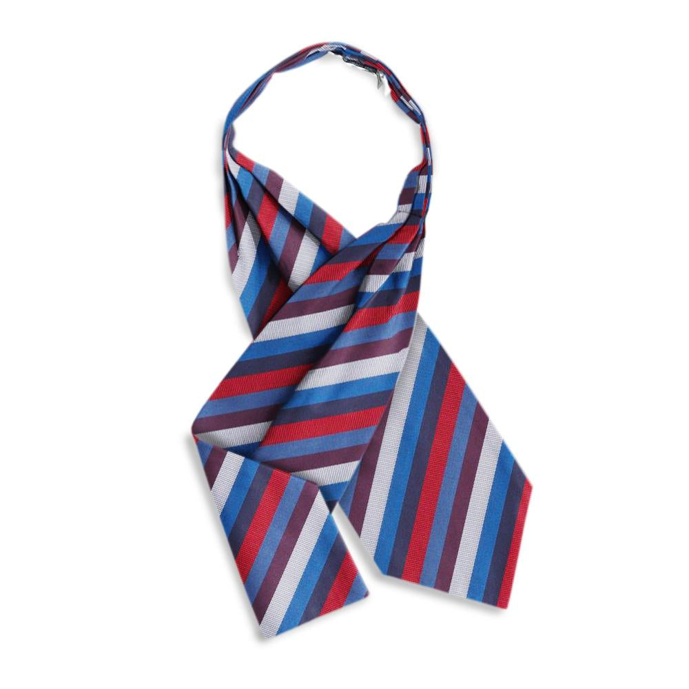 The Windermere patterned free-fold cravat features three stitched center pleats that allow luxurious drape in front without fabric bulk at the nape of your neck. It is completely reversible and sized for a perfect fit. May require a stick-pin.