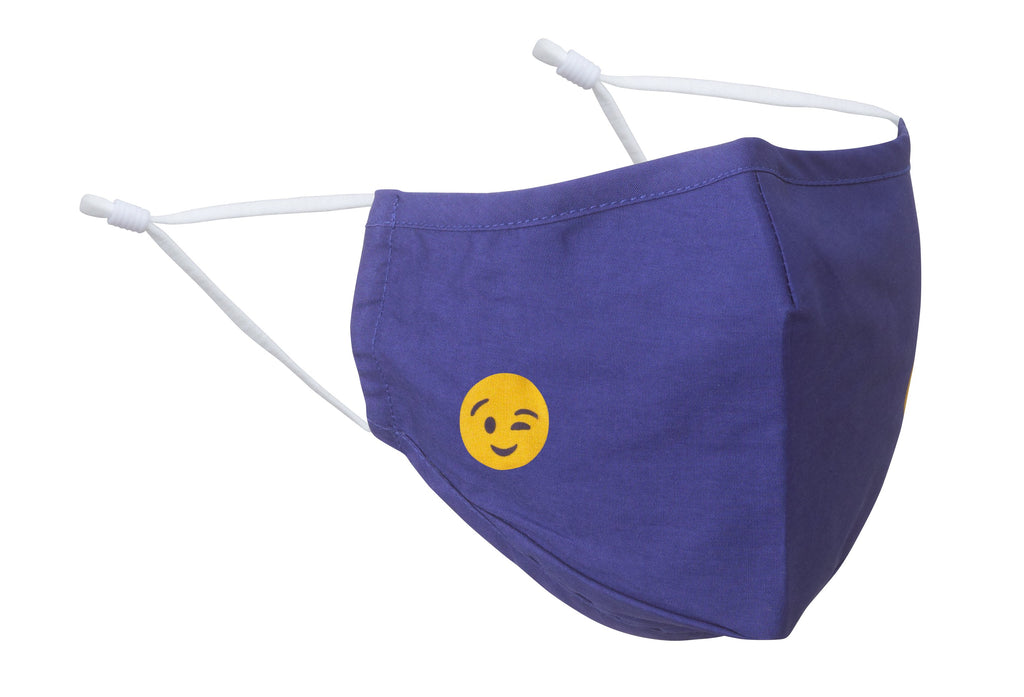 Show off your most charming (and maybe a little cheeky) self when you don this dark blue all-cotton, triple-layer face mask with its yellow winking emoji.